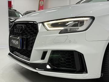 Sedili in pelle traforata a guscio RS riscaldabili, impianto audio Bang&Olufsen, Audi Virtual cockpit Plus, chiave Keyless, accensione a pulsante, sistema di navigazione MMI Plus, sistema di ausilio al parcheggio plus, Audi pre sense front con riconoscimento pedoni, paddle F1, volante base piatta alcantara e pelle, battitacco retroilluminato RS3, pedaliera sportiva in acciaio, pacchetto carbonio su cruscotto e portiere , look esterno nero, scarico sportivo RS, cerchi rotor “19, fari Matrix, sblocco limitatore a 280 km/h, vetri privacy e tanto altro...