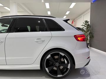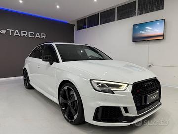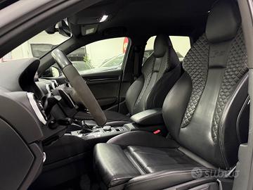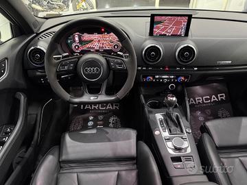 Sedili in pelle traforata a guscio RS riscaldabili, impianto audio Bang&Olufsen, Audi Virtual cockpit Plus, chiave Keyless, accensione a pulsante, sistema di navigazione MMI Plus, sistema di ausilio al parcheggio plus, Audi pre sense front con riconoscimento pedoni, paddle F1, volante base piatta alcantara e pelle, battitacco retroilluminato RS3, pedaliera sportiva in acciaio, pacchetto carbonio su cruscotto e portiere , look esterno nero, scarico sportivo RS, cerchi rotor “19, fari Matrix, sblocco limitatore a 280 km/h, vetri privacy e tanto altro...