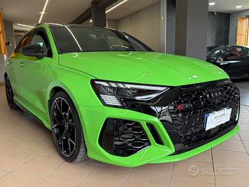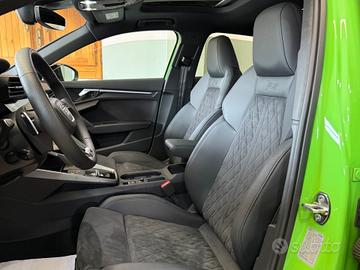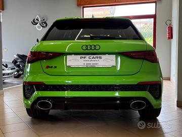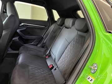 Audi RS3 SPB TFSI quattro S tronic Prezzo (60.900€). Auto pari al nuovo,dallo spendido colore Verde Kyalami Pastello,con soli 16.000km unico proprietario e garanzia ufficiale Audi estesa fino al 2028. Vettura ITALIANA accessoriata con: -Fari full led MATRIX -Cerchi in lega da 19 logati RS -Identity Black -Tetto panoramico apribile -Retrocamera posteriore -Sensori parcheggio 360 -Assistenza al parcheggio -Vetri privacy -Interno in pelle e alcantara a guscio logati RS -Sedili elettrici con memoria con massaggi -Line Assist -Volante sportivo logato RS -Battitacco retroilluminato -Virtual Cockpit -Audi Connect navigatore MMI apple Car Play -Climatizzatore bizona -Pacchetto luci ambient -Impianto stereo Bang&Olufsen POSSIBILITÀ DI SUBENTRO LEASING. Vettura appena igienizzata internamente, valuto permute se di mio gradimento. Possibilità di finanziamento anche dell' intero importo. Disbrigo pratiche automobilistiche. Preferibile contatto telefonico al: o Ci troviamo sulla SS. 18 a Campora San Giovanni- Amantea (CS). PF CARS.