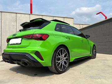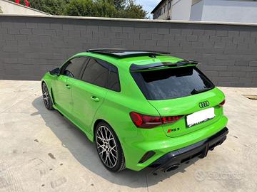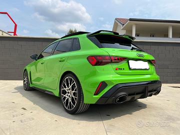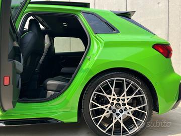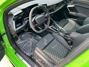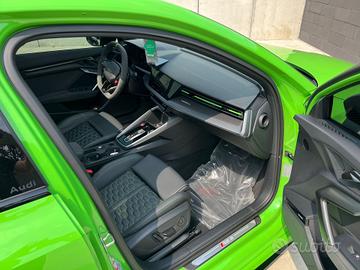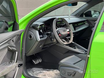 AUDI RS3 2.5 TSI 400 CV 4x4 EDITION PERFORMANCE ANNO 2025 KM 13.000KM EURO 6B AUTOMATICO DSG 7 MARCE (VERSIONE PERFORMANCE AUDI SPORT) FARI MATRIX LED ANTERIORI POSTERIORE CERCHI DA R19 DIAMANTATI (RS) INTERNI IN PELLE HA GUSCIO MARCHIATI RS CON LE CUCITURE VERDI ,ED INTERNO E ESTERNO AL TOP DELLA GAMMA !!! COME SI VEDONO NELLE FOTTO !!! VOLANTE MULTI FUNZIONI IN ALCANTARA/ CLIMA B-ZONA NAVIGATORE 3D USB BLUETOOTH AUX SENSORI ANTERIORI E POSTERIORI ASSETTO SPORTIVO (RS). START AD STOP / SEDILI RISCALDABILI / VETRI OSCURATI /