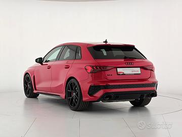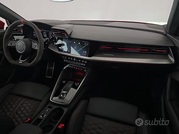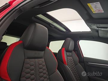 Audi connect navigation infotainment plus, Audi phone box light, Audi pre sense basic, Audi smartphone interface, Calotte specchietti retrovisori esterni in colore carrozzeria, Cerchi in lega design flag a 5 razze a y, Chiave comfort con antifurto (con safelock), Cruise control adattivo, Elementi esterni rs in nero lucido, Innalzamento del limitatore di velocità a 280 km/h, Pinze dei freni verniciate in rosso, Proiettori a led audi matrix con gruppi ottici posteriori a, Rivestimento in pelle fine nappa con punzonatura rs e design, Sedili anteriori regolabili elettricamente con funzione memory per il sedile, Sedili anteriori riscaldabili elettricamente, Sospensioni sportive rs plus con dynamic chassis control e audi, Telecamere perimetrali, Tetto panoramico apribile in vetro, Vetri posteriori e lunotto oscurati