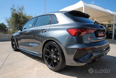 Audi RS3 400 cv , motore 2.500 cc 5 cilindri, cambio automatico S tronic a 7 marce, trazione integrale Quattro con RS Torque Splitter, raggiunge i 100 km/h da fermo in 3,8 secondi.