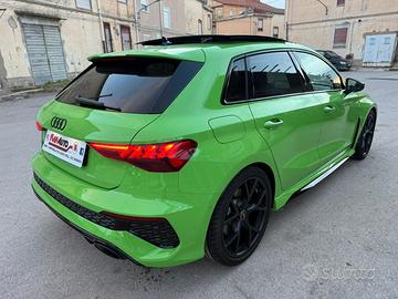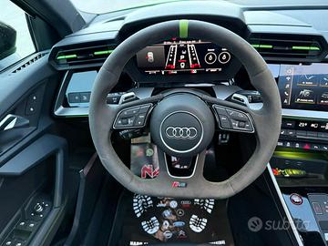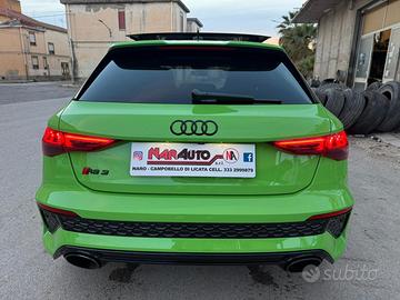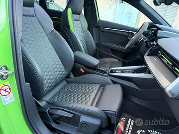 AUDI A3 SPORTBACK RS3 Cilindrata: 2.5 TFSI 400cv Trazione: Integrale Quattro Immatricolazione: 2024 Chilometraggio: 16000 Tipo cambio: Automatico S tronic VETTURA IN CONDIZIONI PARI A NUOVO, IN GARANZIA UFFICIALE AUDI FINO AL 30 APRILE 2026. IVA ESPOSTA. POSSIBILITÀ DI FINANZIAMENTO A TASSI AGEVOLATI. POSSIBILITÀ DI ESTENDERE LA GARANZIA FINO A 36 MESI Cell Giuseppe Allestimento Top di Gamma completo: Colore Verde Kyalami Cambio automatico STronic con paddles al volante Tetto apribile e basculante elettrico Sospensioni sportive RS Plus con dynamic chassis control Telaio adattivo con Audi drive select Pacchetto Design RS plus verde Impianto lavafari Pacchetto confort pro Head Up display Fari matrix led, fanali coda a led e impianto lavafari Pacchetto estetico look nero lucidoplus Pinze dei freni verniciate di nero Audi smartphone interface Ricarica wireless cellulare Audi connect Calotte specchietti retrovisori in nero lucido Pacchetto luci ambiente multicolor plus Impianto audio premium bang oflusen Componenti esterni RS in nero lucido Vetri posteriori e lunotto oscurati Vetro atermico parabrezza Volante multifunzione plus in alcantara con bilancieri e appiattito Park assist con parktronic Telecamera a colori Sedili monoscocca in pelle nappa fine trapuntatura esagonale estampigliatura Rs Impianto di scarico sportivo RS Sedili anteriori a regolazione elettronica Clima automatico bizona Assistente al cambio corsia Cruise control adattivo Cerchi Audi Sport da 19" in nero opaco NARAUTO SRL Campobello di Licata via Buscemi Naro viale Europa Seguici su Facebook, Instagram e tik tok: NARAUTO SRL