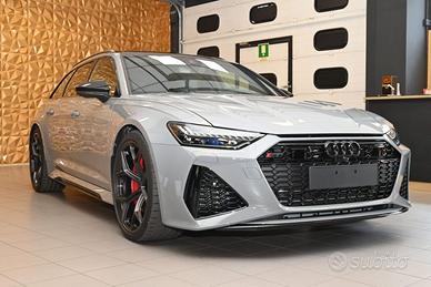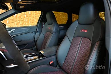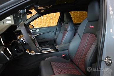 GRIGIO NARDO' GRAU (SPETTACOLARE), INTERNI RS SPORTIVI PLUS IN PELLE TOTALE TRAFORATA VALCONA A NIDO D'APE CON PACCHETTO TOTALE PELLE DESIGN E CUCITURE IN RILIEVO/CONTRASTO ROSSE RACING, VERSIONE PERFORMANCE NUOVO MODELLO 2025, ALLESTIMENTO RS DYNAMIC PLUS, PACCHETTO BLACKLINE, PACCHETTO EXCLUSIVE, PACCHETTO DESIGN IN ROSSO RACING, INNALZAMENTO VELOCITA' A 305KM/H, CAMBIO F1 TIPTRONIC A 8 MARCE DI NUOVA GENERAZIONE CON PADDLES AL VOLANTE, LISTA COMPLETA ACCESSORI: (impianto frenante in Carboceramica RS, impianto di scarico sportivo RS plus, Cerchi in lega 22 pollici in colore nero con pacchetto sportivo plus (esagerati), Doppio tetto panoramico in cristallo brunito, supporto Lombare elettrico, sterzo dinamico, pacchetto dinamico plus (Dynamic Paket plus), Climatronic Plus, Impianto audio BANG&OLUFSEN premium, MatrixBeam, telecamera a 360° con vista in 3D, telecamera di retromarcia (Telecamera posteriore top view a colori), head-up display con proiezione delle info sul vetro, soft close con porte elettriche, rs adaptive suspension, pacchetto sicurezza plus, radar con cruise adattivo e regolazione di distanza, sistema lettura corsia tramite cam, clima auto a 4 zone, Audi phone box, infotainment Top premium, pacchetto design Rs in grigio racing, Virtual Cockpit plus, airbag conducente, airbag passeggero, airbag laterali anteriori, airbag laterali nei sedili posteriori, Airbag testa / finestrino, Airbag testa / finestrino nella parte posteriore, 8 airbag, sedili anteriori regolabili elettricamente, navigatore satellitare cartografico, Volante elettrico appiattito in alcantara con comandi del cambio, fari a LED, sedili full elettrici con funzione memory, sensori Parktronic sensori di parcheggio posteriori anteriori, controllo pressione gomme, sedili anteriori riscaldabili,