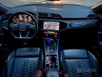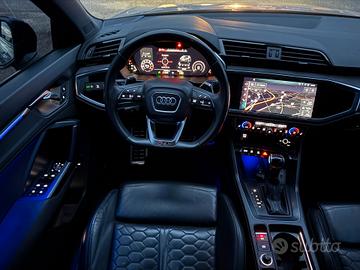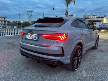 Audi RSQ3 Sportback S-Tronic 2.5 TFSI 400cv 294kw Anno12/2019 Cambio Automatico Chilometraggio: 70.000 km Condizioni: Usato Immatricolazione: 12/2019 Tipologia: Fuoristrada Carburante: Benzina Tipo di cambio: Automatico 7 rapporti Con paddle al volante Accessori Extra: - Interni con Sedili Trapuntati in Pelle nera edelementi in alcantara color Nero - Impianto di scarico sportivo RS - Impianto Frenante RS con dischi Carboceramici - Telaio sportivo RS plus con regolazione dellesospensioni - Telaio adattivo con Audi drive select - Telecamera multifunzionale - Cerchi in lega 21” design 5 razze a V poligonaliNeri - Volante in pelle con profilo sportivo a 3 razze,con multifunzione plus - Riscaldamento dei sedili anteriori - Sedili sportivi plus anteriori - Pacchetto Pelle Nappa fine con trapuntaturaesagonale - Chiave comfort, senza SAFELOCK - Audi pre-sense front per sistema di regolazioneautomatica della velocità - Specchietti esterni regolabili, riscald. eripieg. elettricamente, con funz. autom. antiabb. sui due lati - Specchietto interno con funzione automaticaantiabbagliamento, senza cornice - Elementi interni in Alcantara Neri - Inserti decorativi Carbon - Indicatore di controllo della pressione deipneumatici - Sistema Start/Stop con recupero dell'energia - Sistema di navigazione MMI plus con MMI touch - Fari Matrix LED con indicatori di direzionedinamici - Fari Posteriori a LED - Impianto lavafari - Sensore luminosità e pioggia - Audi Virtual Cockpit plus - Bang & Olufsen Premium Sound System consonorità 3D - Audi phone box - Copertura del motore - Pacchetto Design RS - Pacchetto Vano portaoggetti e vano bagagli - Vetri Privacy (vetri oscurati) - Pacchetto Luci Ambiente plus - Portellone elettrico - Pack black finiture in contrasto nere - Android Auto ed Apple carplay Dotata di: Immobilizzatore elettronico, Filtroantiparticolato, Vivavoce, Touch screen, Controllo vocale, Bluetooth, Autoradiodigitale, Servosterzo, Sensori d