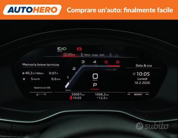 Chilometraggio: 59087 Condizioni: usato Immatricolazione: 02/2020 Tipologia: 4/5-Porte Carburante: Elettrica/Diesel Tipo di cambio: Automatico Adaptive Cruise Control, Airbag laterali, Airbag testa, Alzacristalli elettrici, Android Auto, Antifurto, Apple CarPlay, Autoradio, Bluetooth, Boardcomputer, Bracciolo, Cerchi in lega, Chiusura centralizzata senza chiave, Climatizzatore automatico, 2 zone, Controllo trazione, Controllo vocale, ESP, Fari LED, Fendinebbia, Filtro antiparticolato, Frenata d'emergenza assistita, Freno di stazionamento elettrico, Hill holder, Isofix, Leve al volante, Luci diurne LED, MP3, Portellone posteriore elettrico, Regolazione elettrica sedili, Riconoscimento dei segnali stradali, Sedile posteriore sdoppiato, Sedili riscaldati, Sensore di luce, Sensore di pioggia, Servosterzo, Sistema di navigazione, Sistema di parcheggio automatico, Sound system, Specchietti laterali elettrici, Specchietto retrovisore con funzione antiabbagliamento, Start/Stop Automatico, Supporto lombare, Telecamera per parcheggio assistito, Touch screen, USB, Vetri oscurati, Vivavoce, Volante in pelle, Volante multifunzione PAGAMENTO ALLA CONSEGNA, RESO GRATUITO E 1 ANNO DI GARANZIA: SOLO SU AUTOHERO! _________________________________________ SEMPRE INCLUSO: - Pagamento alla consegna, prima vedi poi paghi - Reso gratuito, avrai 21 giorni e 500 km per cambiare idea - Finanziamento flessibile**, personalizzabile senza vincoli - Standard di qualità, veicoli ricondizionati e sanificati - Semplicità nell'acquisto, gestiamo noi tutte le pratiche - Acquisto sicuro, più di 1000 feedback positivi su Trustpilot - Garanzia 12 mesi inclusa, estendibile fino a 36 mesi _________________________________________ SALIAMO A BORDO! Tra le nostre Audi S5 Sportback, questa si presenta nell allestimento tiptronic quattro MHEVImmatricolata a febbraio 2020, si presenta in perfette condizioni. L alimentazione Diesel è ancora la soluzione migliore per gli spostamenti p