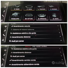 360° camera, ABS, Adaptive Cruise Control, Airbag, Airbag laterali, Airbag Passeggero, Airbag testa, Alzacristalli elettrici, Android Auto, Antifurto, Autoradio, Autoradio digitale, Bluetooth, Boardcomputer, Bracciolo, Cerchi in lega, Chiamata automatica per emergenze, Chiusura centralizzata, Chiusura centralizzata telecomandata, Climatizzatore, Climatizzatore automatico, 4 zone, Controllo elettronico della corsia, Controllo trazione, Controllo vocale, Cruise Control, ESP, Fari full-LED, Filtro antiparticolato, Frenata d'emergenza assistita, Freno di stazionamento elettrico, Head-up display, Hill holder, Immobilizzatore elettronico, Interni in pelle, Isofix, Lettore CD, Leve al volante, Limitatore di velocità, Luce d'ambiente, Luci diurne LED, Monitoraggio pressione pneumatici, MP3, Pacchetto sportivo, Park Distance Control, Pneumatici estivi, Portellone posteriore elettrico, Regolazione elettrica sedili, Riconoscimento dei segnali stradali, Schermo multifunzione interamente digitale, Sedile posteriore sdoppiato, Sedili riscaldati, Sedili sportivi, Sedili ventilati, Sensore di luce, Sensore di pioggia, Sensori di parcheggio anteriori, Sensori di parcheggio posteriori, Servosterzo, Sistema di avviso di distanza, Sistema di chiamata d'emergenza, Sistema di navigazione, Sistema di riconoscimento della stanchezza, Ski bag, Sospensioni pneumatiche, Sospensioni sportive, Sound system, Specchietti laterali elettrici, Start/Stop Automatico, Streaming musicale integrato, Supporto lombare, Telecamera per parcheggio assistito, Touch screen, Trazione integrale, USB, Vetri oscurati, Vivavoce, Volante in pelle, Volante multifunzione