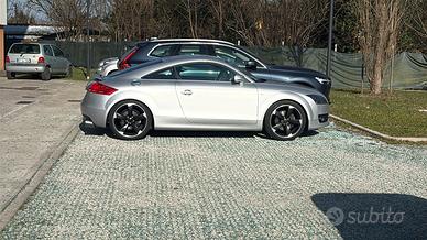 Vendo come da titolo Audi tt 8j 2.0 tfsi da 200cv. L’auto si trova in ottime condizioni, sono stati eseguiti vari lavori di manutenzione e ripristino della vettura dovuto dai suoi anni, come: sostituzione della cinghia di distribuzione, catena del variatore di fase, guarnizione coperchio punterie, rimozione della coppa dell’olio per pulizia e sostituzione pasta, tagliando con olio filtro e candele ( circa 1300km fa ). Tagliandi eseguiti ogni 8000km Sono state sostituite le sospensioni anteriore con delle originali sline, cuscinetto ruota ant sx e post dx per rumorosità, monta pneumatici estivi 255/35 r19 con all’attivo circa 6000km. Inoltre è stata sostituita la radio originale con una con CarPlay e Android auto , è stato montato uno scarico diretto finale artigianale, una aspirazione ramair e pompa benzina originale s3 ( dispongo di tutti i pezzi orinali ) La vettura viene usata quotidianamente quindi i km potrebbero continuare a salire. Il prezzo è trattabile per info scrivete