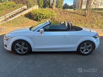 Audi TT roadster 1.8 benzina tfsi s-line. II serie Macchina perfetta con secondo treno gomme da 19 completi di cerchioni come da foto. Cambio nanuale 6 marce. Km 189000 rifatto motore 40000 effettivi. Full optional. Capote elettrica autoradio con schermo grande gia predisposta per android auto o carplay auto. Carrozzeria con qualche piccolissima imperfezione da parcheggi. Colore Bianco