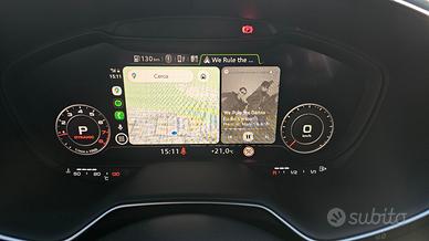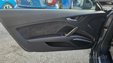 Audi TT Coupè 2.0 TFSI 230cv QUATTRO S-tronic S-line con chilometraggio certificato (34.174 km immatricolata 07/2018) da 9 manutenzioni eseguite presso rete ufficiale (tutte disponibili e riscontrabili su libro service Audi) + revisione, condizioni reali di pari al nuovo, disponibile realmente in autosalone. E' equipaggiata con i seguenti accessori: cambio automatico S Tronic a doppia frizione a 6 rapporti con funzione sequenziale/Sport, pacchetto S Line esterno e interno, dettagli neri lucidi su calandra e paraurti, vernice grigio NANO metallizzato, fari anteriori Led Matrix con lavafari ad alta pressione, fari posteriori Led, sensori di parcheggio anteriori e posteriori, cerchi in lega da 19 forgiati neri lucidi (€ 2.000), alettone posteriore apribile elettricamente sia con pulsante interno sia automaticamente in base alla velocità, vetri posteriori oscurati originali, keyless go, volante sportivo a 3 razze con fondo piatto in pelle liscia con paddles per cambio marcia, cruise control e limitatore di velocità, vetri elettrici, specchi laterali regolabili/richiudibili/riscaldabili elettricamente, impianto stereo Bang&Olufsen con altoparlanti anteriori illuminati, battitacco SLine, sedili sportivi (come l'RS) regolabili elettricamente riscaldabili in pelle nappa totale Sline con cuciture a rombi, pelle estesa su tunnel e copertura superiore cruscotto, pacchetto carbonio interno su maniglie interne portiere e tunnel, supporto lombare regolabile elettricamente, controllo elettronico della corsia e della segnaletica stradale, Audi virtual cockpit plus con varie funzioni e modalità, autoradio navigatore MMI Plus integrato nel virtual con doppio ingresso CD/DVD usb doppio Aux Audi connect connettività completa bluetooth Android Auto/Apple Carplay e streaming musicale, carica smartphone wireless, pedaliera sportiva in alluminio, climatizzatore automatico digitale, drive select con diverse mappature motore selezionabili, Start&stop disinseribile, controllo di trazione e st