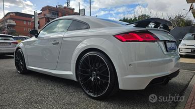 Audi TT Coupè QUATTRO 2.0 TFSI 230cv S-tronic S-line COMPETITION uniproprietario con chilometraggio certificato (58.697 km immatricolata 11/2017) da tutte le manutenzioni eseguite certificate e riscontrabili c/o rete ufficiale, condizioni reali perfette. Cambio olio Haldex e S-Tronic già eseguiti. E' equipaggiata con i seguenti accessori: trazione integrale permanente Quattro, cambio automatico S Tronic a doppia frizione a 6 rapporti con funzione sequenziale/Sport, pacchetto S Line esterno e interno, pacchetto Competition originale da nuova con dettagli neri lucidi su calandra paraurti calotte specchio e alettone posteriore esterno come la RS e estrattore posteriore, vernice bianco perla metallizzato, ppf su paraurti anteriore e calotte specchio, fari anteriori full Led Matrix con lavafari ad alta pressione e frecce dinamiche, fari posteriori full Led con frecce dinamiche, sensori di parcheggio anteriori e posteriori e laterali, sistema di parcheggio automatico park Assist, retrocamera, cerchi in lega da 20 S Line bicolore neri con bordatura satinata, pinze rosse, alettone posteriore fisso nero lucido specifico dell'allestimento, vetri posteriori oscurati originali, keyless go&access, volante sportivo a 3 razze con fondo piatto in pelle liscia e traforata Sline con paddles per cambio marcia, cruise control e limitatore di velocità, vetri elettrici, specchi laterali regolabili/richiudibili/riscaldabili elettricamente, impianto stereo Bang&Olufsen con altoparlanti anteriori illuminati, battitacco SLine, sedili sportivi (come l'RS) regolabili elettricamente riscaldabili in pelle e alcantara Sline con cuciture a rombi a contrasto bianche e logo 'S' sullo schienale, supporto lombare regolabile elettricamente, controllo elettronico della corsia della segnaletica stradale e dell'angolo morto, Audi virtual cockpit pluscon varie funzioni e modalità, autoradio navigatore MMI Plus integrato nel virtual con ingresso CD/DVD doppio usb Aux doppio SdCard e Sim Audi connect connett