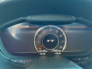 Audi TT Coupe 45 2.0 tfsi s-tronic Sline competition Auto in perfette condizioni, parcheggiata sempre in box e tenuta maniacalmente, utilizzata solo nei weekend. Tagliandi regolari e dimostrabile, ultimo tagliando fatto a 50.000km! Bollo pagato il 31 Marzo. Gomme con 5000km Vendo a malincuore per scarso utilizzo. La macchina monta: -Estensioni paddle in ergal rosso -Sensori anteriori installati a mie spese -Cerchi MAK ttrs (con carta che certifica l’idoneità di utilizzo su strada) -Dashcam di ottima qualità -Alettone aftermarket in carbonio fatto verniciare di nero, dispongo anche del suo originale competition Dispongo anche di due treni di cerchi. Prezzo poco trattabile