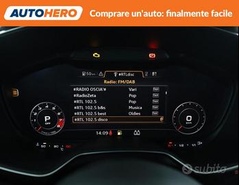Tra le nostre Audi TT, questa si presenta nell allestimento Coupé S tronic quattroImmatricolata a luglio 2019, si presenta in perfette condizioni. L alimentazione Benzina sarà l ideale per muoversi sia in città che su percorsi più lunghi, senza limitazioni alla circolazione, grazie anche al cambio automatico. Infine, la vita a bordo sarà più facile grazie a Chiusura centralizzata, e . Che aspetti? Visita il nostro sito per scoprire tutti i dettagli e la sua storia!