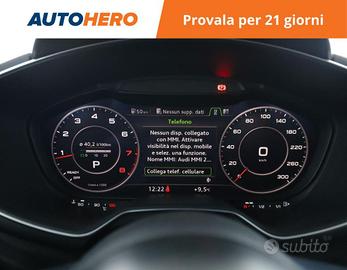 Tra le nostre Audi TT, questa si presenta nell allestimento CoupéImmatricolata a giugno 2016, si presenta in perfette condizioni. L alimentazione Benzina sarà l ideale per muoversi sia in città che su percorsi più lunghi, senza limitazioni alla circolazione, grazie anche al cambio automatico. Infine, la vita a bordo sarà più facile grazie a Chiusura centralizzata, e . Che aspetti? Visita il nostro sito per scoprire tutti i det