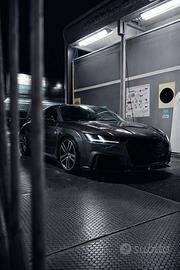 L’auto monta i seguenti pezzi: -MOTORE NUOVO FORGIATO -INTERCOOLER ORRA RACING -PISTONI CP CARRILLO (supportano 900cv) -BIELLE FORGIATE INTEGRATED ENGINEERING -BRONZINE BIELLE KING -BRONZINE BANCO ACL -TURBO IBRIDO SU CUSCINETTI IN CERAMICA -VALVOLE NIMONIC -MOLLE + PIATTELLI -BULLONI TESTA ARP -KIT DISTRIBUZIONE -ASPIRAZIONE MST PERFORMANCE -DECANTER RACING LINE -POMPA OLIO MAGGIORATA -POMPA ACQUA -INIETTORI MAGGIORATI (1000) -POMPA BASSA PRESSIONE -POMPA ALTA PRESSIONE AUTOTECH -CANDELE RS7 -VARIATORI DI FASE -BOBINE RACING CTS -MAPPA SPECIFICA STAGE 4+ ECU+ CAMBIO CON MULTIMAPPA BENZINA 95-100 OTTANI -OLIO MOTUL 5W40 300V -IMPIANTO FRENANTE 6 PISTONCINI BREMBO, DISCHI 370mm, PASTIGLIE PORSCHE (ant.) -IMPIANTO FRENANTE TT RS , DISCHI A MARGHERITA MAGGIORATI (post.) -PARAURTI ANTERIORE TT RS -DOWNPIPE 90mm, CENTRALE SILENZIATO AUDI, SILENZIATORE AUDI TT RS -IMPIANTO STEREO BANG & OLUFSEN