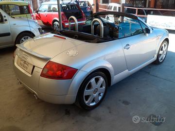 vendo bellissima audi tt 1.8 turbo 20v benzina, quattro cabrio roadster integrale, con soli km132000 sempre ferma in garage con 225cv cambio manuale, 6 marce anno 12/2001, full optional, motore pari al nuovo perfettissimo, carrozzeria perfetta come da foto, interni come da foto, sedili riscaldabili in pelle, vettura veramente molto bella da vedere per credere, full con cerchi in lega da 17, clima bizona, fari exeon, cabrio roadster, alettone posteriore, stereo a cassetta cd originale audi, vetri elettrici, specchietti elettrici, volante a tre razze e altri tanti accessori, vettura per veri amatori, veramente bella, accetto permuta con mercedes slk r171 e anche altre auto e moto, possibilità di farla visionare da un vostro meccanico di fiducia, non perditempo per qualsiasi informazioni chiamare al numero rs auto quarto (NA) oppure al numero fisso rs auto.