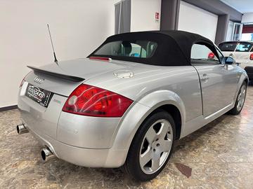 Audi TT Roadster 1.8 Turbo 225 CV Quattro - 11/1999 - 114.000 km - Condizioni impeccabiliVendo splendida Audi TT Roadster Mk1 1.8 Turbo 225 CV, trazione integrale Quattro, cambio manuale 6 marce, immatricolata 11/1999.Un'auto sportiva intramontabile, oggi riconosciuta di interesse storico e molto apprezzata da appassionati e collezionisti.L'auto ha solo 114.000 km originali e certificati, ed è in condizioni davvero eccellenti per l'età, sia esteticamente che meccanicamente.Sempre manutenzionata con cura, tenuta in garage e utilizzata solo per uscite occasionali.Caratteristiche principali: * Motore: 1.8 Turbo 20V - 225 CV * Cambio: manuale 6 marce * Trazione: integrale permanente Quattro * Alimentazione: benzina * Anno: 11/1999 * Chilometraggio: 114.000 km * Versione: Roadster (cabrio)Condizioni: * Auto completamente originale, mai modificata o elaborata * Carrozzeria perfetta, lucida e senza graffi o segni evidenti * Interni curati e ben conservati, pelle e finiture in ottimo stato * Capote funzionante e in ottime condizioni * Meccanica impeccabile, pronta all'uso * Manutenzione sempre eseguita regolarmente (documentabile)Descrizione aggiuntiva: