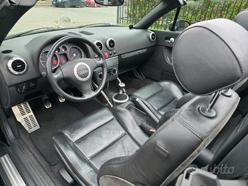 Accessoriata di vernice nero pastello, cambio manuale 6 marce, trazione integrale quattro, capote elettrica in tessuto nero perfette condizioni, cerchi in lega da 17'', fari allo xeno, antifurto, chiusura centralizzata, autoradio, vetri elettrici, climatizzatore automatico bi-zona, specchietti elettrici, computer di bordo, volante in pelle, Interni sportivi S-Line in pelle nappa primo fiore, Sedili riscaldati, cruise control, frangivento elettrico, sospensioni sportive, ecc.