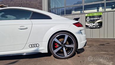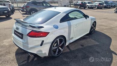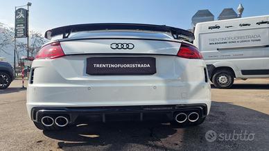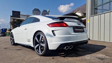 Climatizzatore automatico comfort, Vani portaoggetti, Luci interne, Sedili anteriori sportivi S, Appoggiabraccia centrale anteriore, Cielo dell'abitacolo in tessuto nero, Listelli sottoporta TTS, Tappetini anteriori, Schienale del sedile posteriore ribaltabile, Volante sportivo multifunzionale sagomato in pelle a 3 razze, appiattito nella parte inferiore, Attrezzi di bordo, Coperchio del serbatoio in look alluminio, Materiale di pronto soccorso e triangolo d'emergenza, Sedili posteriori (2), Versione Non Fumatori, Filtro antiparticolato per motori Benzina, quattro, Kit riparazione pneumatici, Audi single frame con design TTS, Inserti in alluminio spazzolato opaco, Look alluminio ampliato nell'abitacolo, Paraurti in design TTS, Audi virtual cockpit, Audi virtual cockpit plus, Dispositivo elettronico antiavviamento (immobilizer), Antifurto volumetrico, Chiusura centralizzata, Audi magnetic ride con taratura specifica S, Radio MMI, Ricezione radio digitale, S tronic, Cerchi in lega di alluminio 8,5J x 18 con design a 10 razze a V, parzialmente lucidi, con pneumatici 245/40 R18 93Y, Interfaccia Bluetooth, Audi music interface, Recupero di energia, Sistema Start & Stop, Pinze freno verniciate in colore nero, Specchietti retrovisivi esterni con indicatori di direzione a LED integrati, riscaldabili, ripiegabili e regolabili elettricamente, Alloggiamento degli specchietti retrovisivi esterni in look alluminio, Spoiler posteriore, Denominazione modello, Terminali di scarico TTS, Xenon plus, Gruppi ottici posteriori a LED, Sensore luci/pioggia e funzione coming home/leaving home, Alcantara/pelle nera, Elementi colorati degli interni in vernice antracite, Sistema appoggiatesta di sicurezza, Airbag fullsize, Airbag laterali anteriori, Airbag laterali anteriori e sistema di airbag per la testa, Servosterzo elettromeccanico, Dispositivo di controllo della trazione (ASR), Controllo elettronico della stabilità (ESC),
