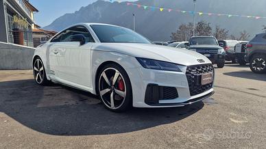 Climatizzatore automatico comfort, Vani portaoggetti, Luci interne, Sedili anteriori sportivi S, Appoggiabraccia centrale anteriore, Cielo dell'abitacolo in tessuto nero, Listelli sottoporta TTS, Tappetini anteriori, Schienale del sedile posteriore ribaltabile, Volante sportivo multifunzionale sagomato in pelle a 3 razze, appiattito nella parte inferiore, Attrezzi di bordo, Coperchio del serbatoio in look alluminio, Materiale di pronto soccorso e triangolo d'emergenza, Sedili posteriori (2), Versione Non Fumatori, Filtro antiparticolato per motori Benzina, quattro, Kit riparazione pneumatici, Audi single frame con design TTS, Inserti in alluminio spazzolato opaco, Look alluminio ampliato nell'abitacolo, Paraurti in design TTS, Audi virtual cockpit, Audi virtual cockpit plus, Dispositivo elettronico antiavviamento (immobilizer), Antifurto volumetrico, Chiusura centralizzata, Audi magnetic ride con taratura specifica S, Radio MMI, Ricezione radio digitale, S tronic, Cerchi in lega di alluminio 8,5J x 18 con design a 10 razze a V, parzialmente lucidi, con pneumatici 245/40 R18 93Y, Interfaccia Bluetooth, Audi music interface, Recupero di energia, Sistema Start & Stop, Pinze freno verniciate in colore nero, Specchietti retrovisivi esterni con indicatori di direzione a LED integrati, riscaldabili, ripiegabili e regolabili elettricamente, Alloggiamento degli specchietti retrovisivi esterni in look alluminio, Spoiler posteriore, Denominazione modello, Terminali di scarico TTS, Xenon plus, Gruppi ottici posteriori a LED, Sensore luci/pioggia e funzione coming home/leaving home, Alcantara/pelle nera, Elementi colorati degli interni in vernice antracite, Sistema appoggiatesta di sicurezza, Airbag fullsize, Airbag laterali anteriori, Airbag laterali anteriori e sistema di airbag per la testa, Servosterzo elettromeccanico, Dispositivo di controllo della trazione (ASR), Controllo elettronico della stabilità (ESC),
