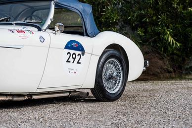 Questa auto d'epoca, una vera iconica british car, si presenta in ottime condizioni, con il fascino della patina delle ultime edizioni del 2020, 2021, e 2023 della mitica 1000 Miglia.