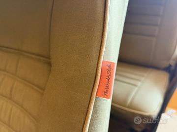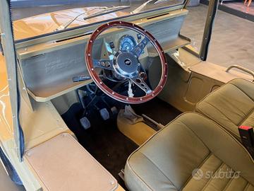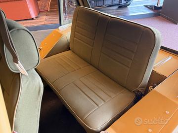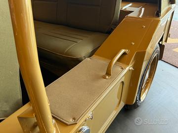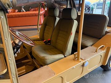 Totalmente ricondizionata dal nostro team "The world's style" in un delicatissimo colore Sahara beige con interni totalmente in tessuto verde militare e cadenino in alcantara.