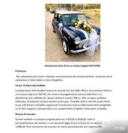 Austin Rover Mini Mayfair del 1986. Ristrutturata completamente. Fatta valutazione del veicolo. Questo modello in condizioni originali parte dai 6.700, ai 9.200. Vista la personalizzazione del veicolo e i suoi accessori aggiunti originali, può arrivare ad un valore di 12mila. PREZZO INDICATIVO. TRATTATIVA IN PRIVATO. Per informazioni 3398086941