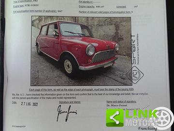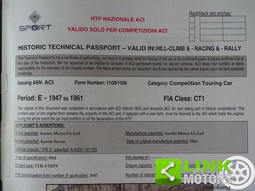 Splendida auto d'epoca Austin Seven del 1961 preparata Pronto Corsa con certificazioni ufficiali ed in corso di validità FIA e HTP con sedile, cinture ed estintore aggiornati e a norma, vetri in lexan.