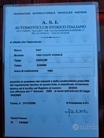 Automobile Fiat 1500 coupè Vignale, iscritta ASI, anno 1964, colore grigio, restaurata perfettamente come originale.