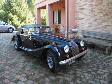 Morgan 4/4 L'icona dell'automobilismo Britannico con una tradizione ultra secolare (fondata nel 1909)! Unica ed inimitabile, uguale a se stessa dal 1946 ad oggi. Costruita completamente a mano. Materiali, finiture e dettagli sartoriali. Telaio a longheroni in acciaio galvanizzato, scocca supportata da legni di frassino trattati e pannelli in alluminio avvitati. Peso complessivo 877 kg. Una vera istant classic, con il fascino di una vettura d'altri tempi, ma con l'affidabilità e le prestazioni di una vettura moderna. Motore derivazione Ford 1600 Kent c.c. 4 cilindri in linea. Accelerazione 0-100 km/h in 7,5 secondi, consumo medio 10 km per litro. E' stimato che una grossa percentuale di tutta la produzione Morgan sia ancora esistente, conservate da appassionati desiderosi di tramandare ai posteri il culto delle belle cose destinate a non scomparire. Nulla di banale, nulla di commerciale, un vero trionfo di forme sinuose, profumi di legnami e pelli pregiate. Ogni dettaglio è modellato manualmente da abili artigiani, ebanisti, tappezzieri, batti lama, tutti accomunati dall'orgoglio di appartenere ad una grande famiglia impegnata a costruire con armoniosa dedizione una vettura unica e sempre diversa. - ruote a raggi cromate compresa la 5 di scorta - interno in pelle Muirhead - tonneau cover - volante in legno - cruscotto in radica di noce - griglia metallica su calandra - paraurti - fari supplementari - portapacchi