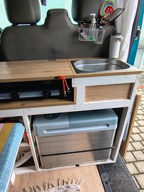 è completamente autonomo dal punto di vista elettrico. ha doppia batteria e pannello solare. taniche acqua pulita e sporca.