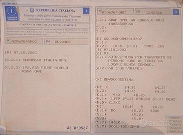 - Immatricolazione10/2003