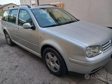 Vendo VW Golf4 Variant,1.9 TDI 130CV,4MOTION,gancio traino( usato solo 5 volte),clima automatico, unico proprietario, km Originali, cambio olio motore eseguito da poco..,trazione integrale non permanente, alzacristalli elettrici ant. e post.,chiusura centralizzata, fendinebbia,colore grigio chiaro metallizzato, interni colore nero,anno 12-2002,km 245900.
