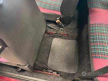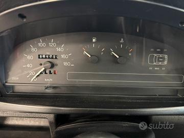 La linea esterna, caratterizzata dal tipico portellone posteriore in pannello nero e dalle forme compatte del modello, conserva vernice in tonalità originale, con finiture e modanature correttamente allineate. I gruppi ottici, anteriori e posteriori, risultano integri e coerenti con la produzione del periodo.