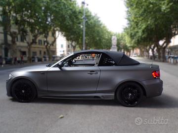 vettura completamente ricoperta con pellicola protettiva color grigio opaco, il colore originale dell'auto è nero metallizzato, la capote è perfettamente funzionante e integra, ma presenta il lunotto leggermente scollato nella parte esterna.