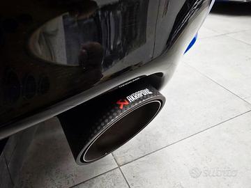 Scarico Akrapovic doppio leggibile sul terminale di scarico in fibra