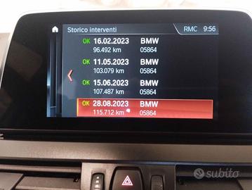 ABS con ripartitore elettronico della forza frenante, con assistenza alla frenata di emergenza e asciugatura freni in caso di pioggia Active Guard Active Guard Airbag frontali per guidatore Airbag frontali per passeggero anteriore Airbag laterali a tendina per la testa (Window-bag) dei passeggeri anteriori e posteriori Airbag laterali per guidatore Airbag laterali per passeggero anteriore Antifurto con telecomando Attentiveness Assistant Badge Luxury Line sul passaruota anteriore Battitacchi anteriori con scritta BMW BMW Connected Drive services BMW Emergecy Call BMW Mobility System: kit di gonfiaggio in caso di foratura BMW Remote Services BMW Teleservice Bracciolo anteriore Bulloni antifurto Business Pack Calandra a doppio rene con 11 listelli in colore high gloss Chrome Calotte retrovisori laterali in tinta carrozzeria con indicatore di direzione a LED integrato Cambio autom. DCT a 7 Cambio automatico DCT a 7 rapporti con doppia frizione Cerchi in lega da 17" Styling 547 dimantati con fondo brunito Chiave di accensione "Comfort-Go" Chrome Line esterna Climatizzatore automatico bi-zona con sensore di qualità dell'aria, include bocchette posteriori Comandi multifunzione al volante Computer di bordo
