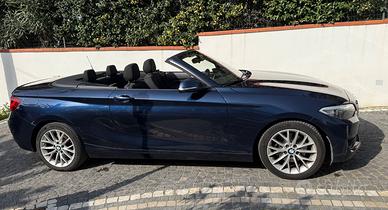 Vendo BMW Serie 2 Cabrio 220d immatricolata ad ottobre 2015, colore blu metallizzato, interni in tessuto.