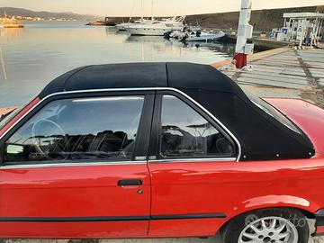 BMW cabrio 316 BAUR del 1990, tappezzeria in tessuto ottimo stato. Km. 221.000. Motore, trasmissione, radiatore, freni, spinterogeno rifatti a 180.000 km. Cappotta e gomme nuove, carrozzeria ottimo stato come foto. Ultima revisione luglio 2025, iscritta ASI. Prezzo 11.500,00€ trattabile