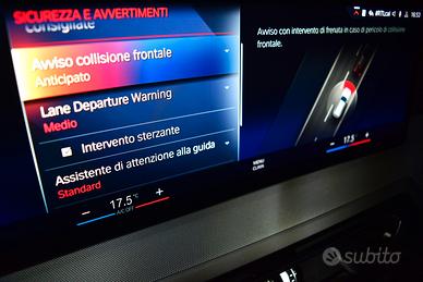 Allestimento "Business Advantage" dotato dei seguenti optional:vernice pastello Alpine White,climatizzatore automatico trizona,sedili in stoffa Hevelius,modanature interne in Quartz Silver opaco,volante sportivo in pelle con comandi multifunzione,Bmw Operating System Sistema 8.5 con sistema di navigazione,Bmw Live Cockpit Plus con Bmw Curved Display,Head-Up Display,interfaccia Bluetooth con USB per audio streaming e telefonia Wireless,radio DAB,Active Cruise Control con funzione Stop and Go,Active Guard Plus,sensore pioggia,pacchetto portaoggetti,pacchetto luci,BMW Connected Package Plus,Driving Experience Control,cambio automatico 8 rapporti Steptronic,pacchetto retrovisori interno ed esterni autoanabbaglianti e richiudibili elettricamente,Shadow Line M lucida con mancorrente su tetto,fari anteriori Bi-LED,fari posteriori Full Led con Design 3D,High Beam Assistant,tendine parasole finestrini posteriori,Parking Assistant,telecamera posteriore,sistema di carico passante dei sedili posteriori divisibili 40:20:40,apertura/chiusura comfort bagagliaio e lunotto apribile separatamente,vetri posteriori e lunotto oscurati,barre portatutto sul tetto in nero opaco,serbatoio con capacità maggiorata,indicatore pressione pneumatici,cerchi in lega 18" Styling a V n° 780 in Orbit Grey bicolore.
