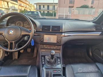 BMW 320Ci Cabrio e46 170 cv, immatricolata a Febbraio 2001, 240.167 km, cambio manuale a 5 marce, colore "Alpinweiss" pastello, interni in pelle nera, sedili regolabili elettricamente, tetto in tela apribile elettricamente, 4 airbag, alzacristalli elettrici, specchietti regolabili elettricamente, antifurto, fendinebbia, autoradio touchscreen Android cd mp3 con navigatore cartografico, clima automatico, cerchi in lega bruniti da 17" con 4 gomme nuove Goodride Solmax1 225/45 zr17.