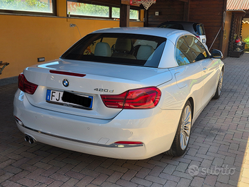 Vendesi BMW cabrio 420d acquistata presso concessionario BMW ROMA con garanzia bmw,2 proprietario appena tagliandata bmw e revisionata e gommata 52000 km originali certificati.Interni in pelle schermo navigatore maxi sedili elettrici e riscaldabili.No perditempo ispezionabile presso bmw.