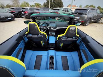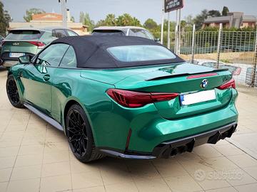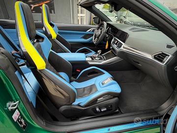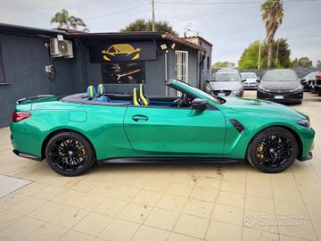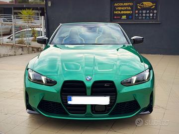 BMW M4 Cabrio 2022 Competition xDrive 34.000 KM – FULL OPTIONAL – FULL CARBON – CARBOCERAMICA In vendita splendida BMW M4 Cabrio Competition xDrive 510 CV, anno 2022, con soli 34.000 km certificati. Vettura in condizioni MANIACALI, configurazione rarissima e super accessoriata. ⸻ MOTORE & TRAZIONE • 3.0 6 cilindri TwinPower Turbo • 510 CV – versione Competition • Trazione integrale xDrive • Cambio automatico sportivo 8 rapporti • 0-100 km/h in circa 3,7 secondi • Sound pieno e cattivo da vera M ⸻ FULL CARBON PACK • Splitter anteriore in carbonio • Minigonne e dettagli esterni in carbonio • Diffusore posteriore in carbonio • Inserti interni in carbonio • Sedili M Performance FULL CARBON (ultra racing, super leggeri, rarissimi) ⸻ IMPIANTO FRENANTE TOP • Freni carboceramici M • Dischi carboceramici in perfette condizioni • Pasticche freno nuove ⸻ MANUTENZIONE • Tagliando appena effettuato • Gomme nuove • Nessun lavoro da fare – pronta all’uso ⸻ OPTIONAL TOP DI GAMMA • Head-Up Display • Telecamere 360° • Driving Assistant Professional • Impianto audio Harman Kardon • Sedili elettrici con memoria • Cerchi M neri • Capote elettrica ⸻ Colore verde metallizzato esclusivo, abbinato a interni sportivi nero/blu con cuciture a contrasto: eleganza e aggressività allo stato puro. Configurazione oltre 120.000€ da nuova Full Carbon + Carboceramica xDrive – massima trazione Tagliando fatto + gomme nuove ⸻ Auto Valentino 91 SRLs Solo per veri intenditori.