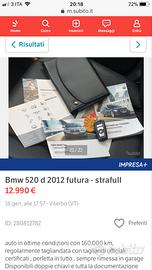 Vendo auto tenuta in ottime condizioni, regolarmente tagliandata con documenti, full optionals, tutto funzionante nessun anomalia in diagnosi, km 267000 immatricolata 12/2011, qualsiasi prova.