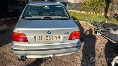 Vendo bmw 520i del 96 quindi passaggio 250€ e 24€ di bollo. Diversi lavori eseguiti tra cui frizione nuova, revisione vanos + coperchio punterie, pompa acqua con cinghia servizi, tutti i bracci completi nuovi anteriori e posteriori piu testine e tiranti sterzo, assetto regolabile in altezza e durezza (coilover), candele + tagliando, montaggio gancio traino nuovo questo anno, set cerchi originali + cerchi 17 con gomme nuove montate da qualche mese. Bombola gpl con scadenza 2029 revisione veicolo valida fino al 2027. Interni in discrete condizioni come la carozzeria unico lavoro da fare sara un cuscinetto ruota un po rumoroso ma per il resto la macchina funziona bene usata praticamente solo in autostrada. Per info contattatemi al 3421216893