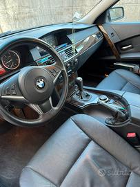 Vendesi BMW e60 anno 2007 con quasi 140 mila km originali . Macchina con motore perfetto , tagliandato ogni anno in concessionario ufficiale , fatture comprese . Recentemente e stato fatto anche il cambio olio del cambio automatico, ( gia fatto in precendenza ) e a meta mese verra eseguito un tagliando completo con olio , filtri, e olio freni ecc( pastiglie e dischi sono stati fatti circa 40mila km fa ) . La macchina ha avuto un solo proprietario , mio padre , che usava come seconda macchina nei week end . Macchina a livello di motore perfetta . Unico difetto , ha il paraurti davanti spaccato nella zona mascherine radiatore e un crepa zona laterale dovuto a un impatto con un capriolo. Fatto preventivo dal carrozziere e per sistemarlo ci vogliono circa 1000-1200€ . Qualora la si desideri perfetta , verrà fatto fare il lavoro aggiungendo i 1200€ in piu di differenza . Al momento Viene usata come seconda macchina , per cui non ho premura di vendita e non verra svenduta