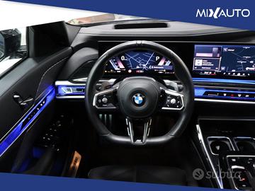 Ambient light, Luci interne e area maniglie illuminata con apertura telecomando, Luci interne: centrale anteriore e posteriore, luci lettura anteriori, alette parasole e portaoggetti, Luci interne: vano piedi anteriore, sotto-porta anteriori e vano bagagli, Sedile guidatore con regolazione elettrica e funzione memory, Riscaldamento sedili anteriori e posteriori, Riscaldamento sedili anteriori, Volante sportivo in pelle a 2 razze con comandi multifunzione (logo con bordo blue nelle motorizzazioni BEV), Volante sportivo M in pelle a tre razze, Bracciolo centrale per sedili anteriori con vano portaoggetti, Bracciolo centrale per sedili posteriori con portabevande, Controller iDrive nella consolle centrale con tasti per selezione diretta funzioni e funzioni preferite, Sistema di carico passante, Supporto lombare, Climatizzatore automatico con controllo a 4 zone, BMW Teleservices, BMW Touch Command, Cornering Brake Control, Sensori di collisione attivi, Accensione senza inserimento chiave, BMW Livecockpit Professional, Antifurto con allarme, Sistema di chiusura centralizzata: portiere, flap serbatoio, bagagliaio. Chiusura aut. regolabile., Bowers & Wilkins Surr. Sound system, Head-Up Display, Wireless charging, Radio DAB, Presa USB: 2 bracciolo ant (ricarica + trasmissione dati); 2 bracciolo post (ricarica ), Specchietti retrovisori esterni regolabili e ripieg. elett., riscaldati e lato guida auto anabbagliante, Comfort Access, Luci posteriori con tecnologia a LED, Fari fendinebbia posteriori, High Beam Assist, Sensore pioggia con accensione anabbaglianti, regolazione tergicristalli e sensore di appannamento, Sistema di regolazione automatica della profondità dei fari, Fari adattivi con tecnologia a LED, BMW Connected Package Professional, Pacchetto retrovisori interno ed esterni autoanabbaglianti e richiudibili elettricamente, Sistema anti bloccaggio di sicurezza ABS, Cerchi in Lega da 21", SOUND SYSTEM BOWER WILKINS,