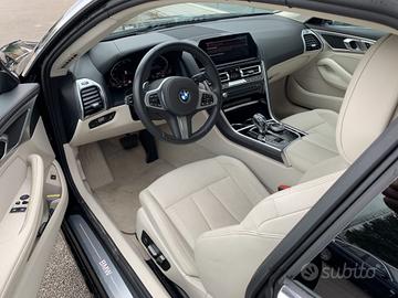 BMW 840i xDrive, listino 113.000€ completa di: vernice metallizzata Black Sapphire, cerchi in lega da 20", fari a LED adattativi, High Beam Assistant, Parking Assistant Plus con Surround View, vetri laterali posteriori e lunotto oscurati, Comfort Access System, Chrome Line esterna, interno in pelle Vernasca Ivory White, riscaldamento sedili anteriori, supporto lombare, sistema di navigazione Professional, telefono bluetooth con ricarica wireless, DAB, Driving Assistant, antifurto, modanature interne BMW Individual in nero lucido Piano Black, applicazioni in vetro Crafted Clarity, volante sportivo M in pelle con comandi multifunzione, non fumatore.