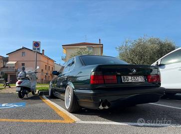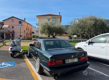 Vendo bmw e34 serie 5 520i 129cv circa 145 mila km benzina esternamente restaurata monta assetto cerchioni omologati a libretto insieme a misura gomme terminale di scarico volante a calice+suo originale radio bluetooth pacchetto estetico m5 con griglia frontale minigonne ecc completamente riverniciata motore perfetto nessun lavoro da fare frizione e distribuzione fatta da circa 4 mesi unici lavoro da fare se si vuole è rifare gli interni ( pannelli porta e sedili ) tetto rifatto nessun segno significativo sulla carrozzeria qualche segno da parcheggio ( la gente guida con i piedi ) prezzo trattabile dopo la visione della auto