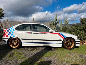 Valuto vendita della mia bmw e36 318tds compact serie carving, quindi con diversi accessori M sport, come specchietti, sedili recaro tessuto e alcantara, volante a tre razze, tetto apribile elettrico in due posizioni, minigonne deluxe, 4 freni a disco, a libretto omologate misure cerchi e gomme da 15/16 e 17. Attualmente monta paraurti anteriore M sport con fendinebbia gialli nuovi e griglia M sport, cerchi M sport da 17” con gomme 225/45, assetto sportivo -40mm, impianto frenante completo sportivo nuovo, spoiler cofano e lunotto posteriore in abs, loghi completi interni ed esterni ALPINA compreso pomello cambio (oroginale), livrea in stile dtm anni 90”. Vettura in buona condizioni d’uso, mettendo in conto dei suoi oltre 26 anni, con soli 227milakm, auto revisionata sino a dicembre 2027, tagliando completo eseguito a dicembre 2025 con sostituzione iniettore pilota originale bosch a gennaio 2026. La macchina viene usata tutti i giorni regolarmente senza problemi Veicolo di interesse storico in quanto se pur compact però modello carving, ottima base anche per un eventuale swap con M47 (o M57 se si vuol equipaggiare per un uso sportivo) (Acquistata già così) 🤷🏻♂️ NO SCAMBI NO PAGLIACCI o gente senza soldi Primo contatto Solo se seriamente interessati per messaggio wattapp al numero +393452309690 Mario